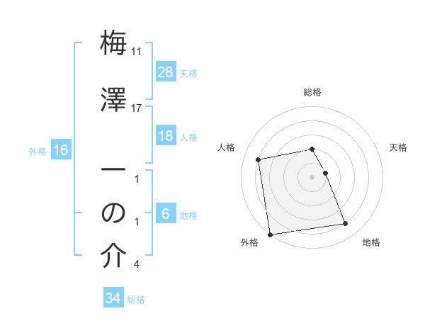 梅澤 一の介さんを姓名の画数から五運を鑑定