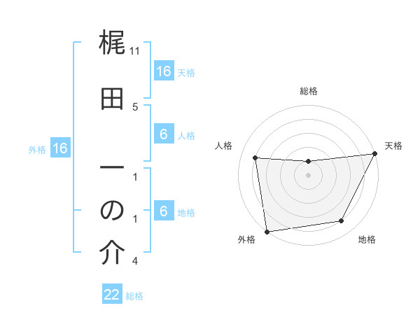梶田 一の介さんの外格は16画の5点!