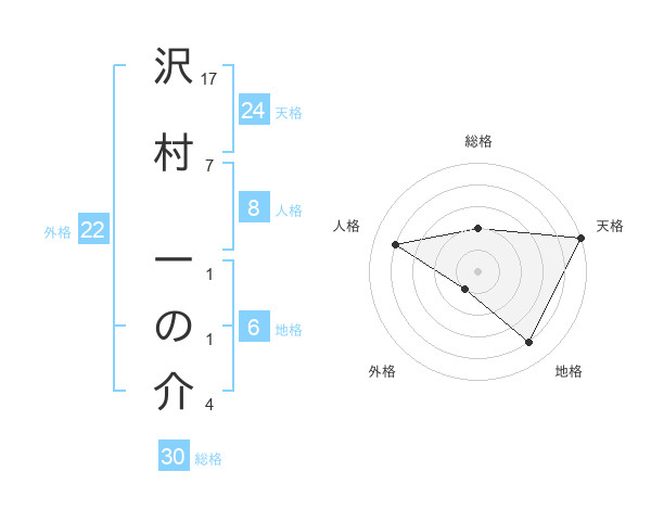 沢村 一の介さんの総格は30画の2点!