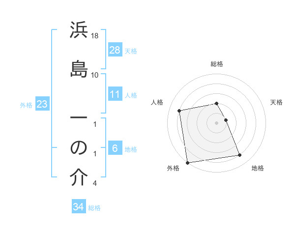 浜島 一の介さんを姓名の画数から五運を鑑定