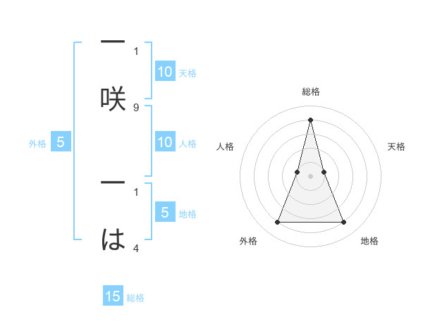 一咲 一はさんの総格は15画の4点!