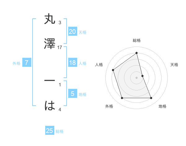丸澤 一はさんの総格は25画の4点!