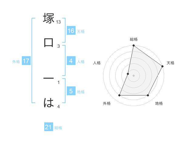 塚口 一はさんの総格は21画の5点!