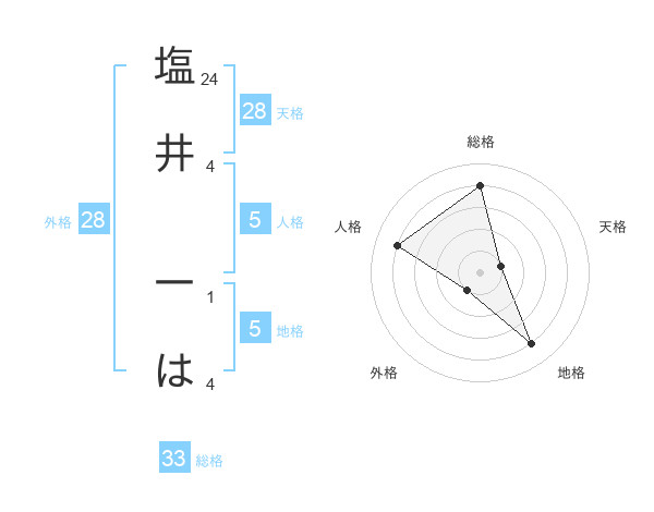 塩井 一はさんの地格は5画の4点!