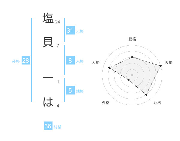 塩貝 一はさんの天格は31画の5点!