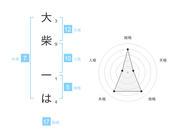 大柴 一はさんの天格は12画の1点!