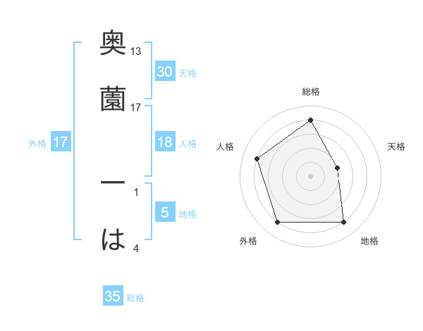 奥薗 一はさんを姓名の画数から五運を鑑定