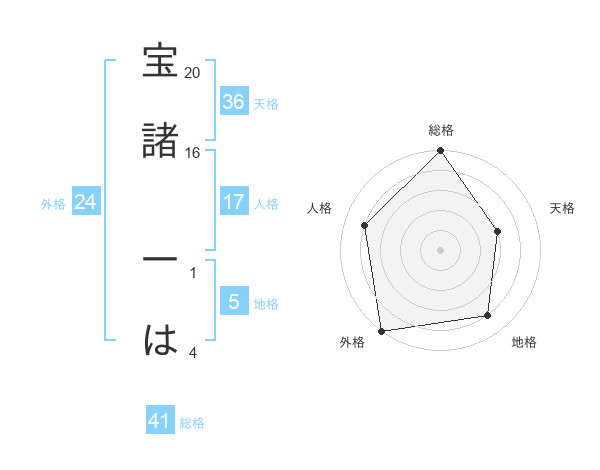 宝諸 一はさんを姓名の画数から五運を鑑定