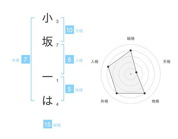 小坂 一はさんの地格は5画の4点!