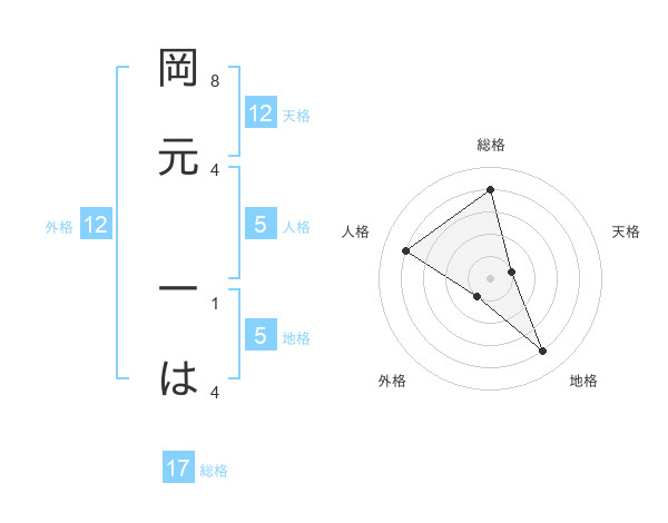 岡元 一はさんの総格は17画の4点!