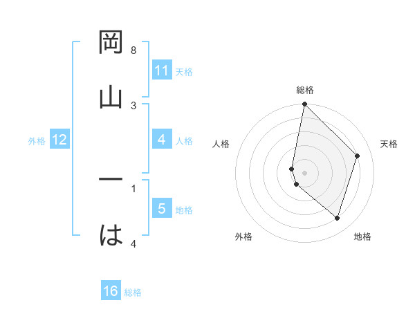 岡山 一はさんの総格は16画の5点