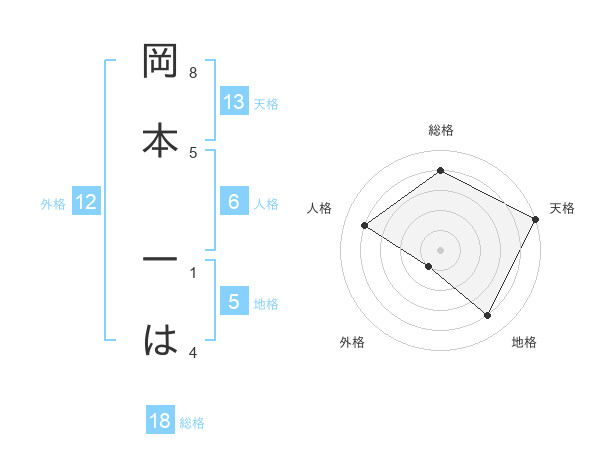 岡本 一はさんの天格は13画の5点!