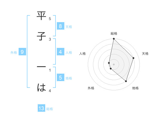 平子 一はさんの総格は13画の5点!