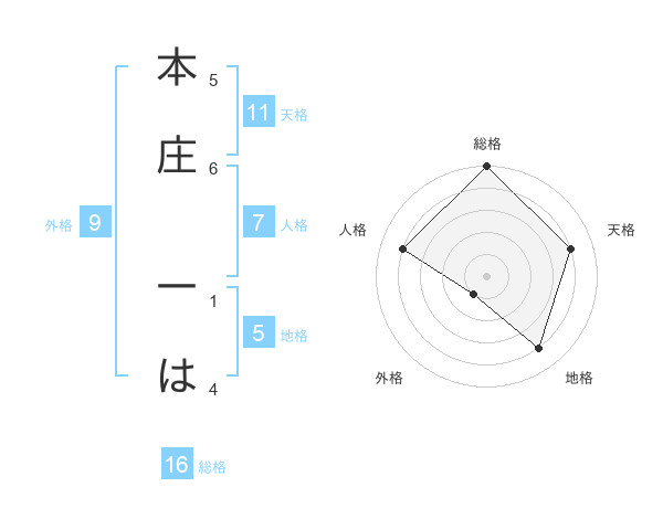 本庄 一はさんの地格は5画の4点!