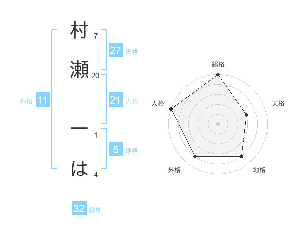 村瀬 一はさんの総格は32画の5点!
