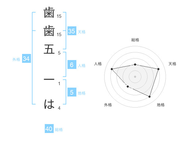 歯歯五 一はさんの天格は35画の4点!