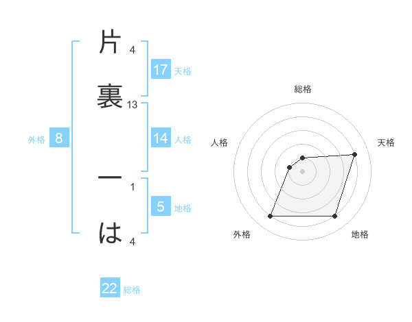 片裏 一はさんの総格は22画の1点!