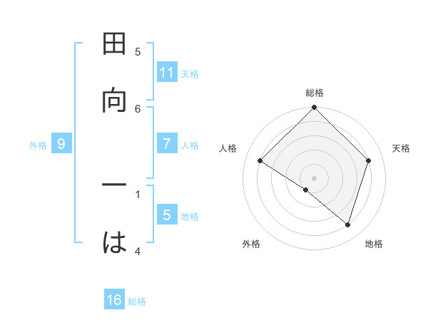 田向 一はさんの地格は5画の4点!