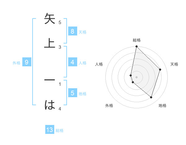 矢上 一はさんの総格は13画の5点!