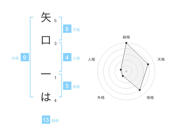 矢口 一はさんの総格は13画の5点!