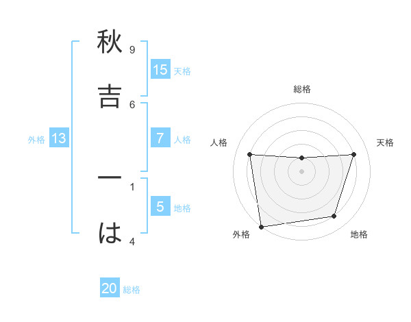 秋吉 一はさんの総格は20画の1点!