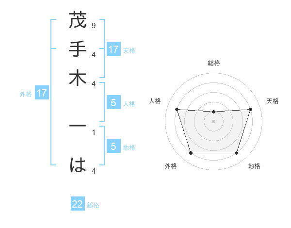 茂手木 一はさんを姓名の画数から五運を鑑定