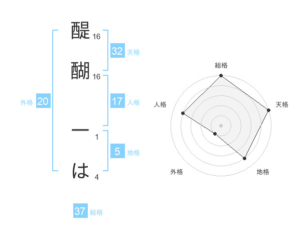 醍醐 一はさんの総格は37画の5点!