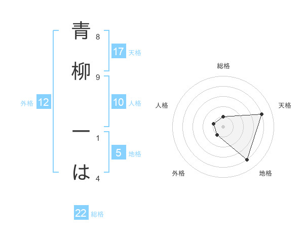 青柳 一はさんの地格は5画の4点!