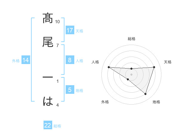 髙尾 一はさんを姓名の画数から五運を鑑定