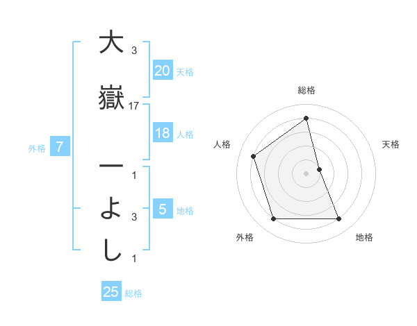 大嶽 一よしさんを姓名の画数から五運を鑑定