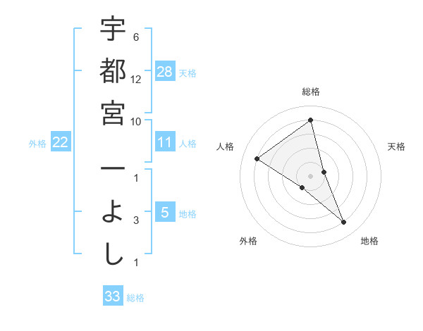 宇都宮 一よしさんの総格は33画の4点!