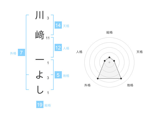 川﨑 一よしさんの地格は5画の4点!
