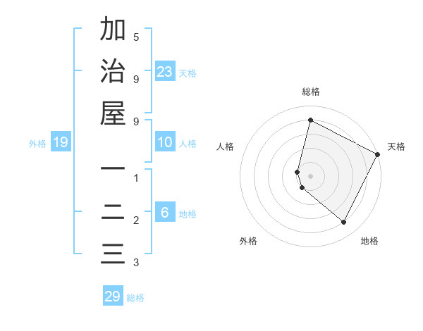加治屋 一ニ三さんを姓名の画数から五運を鑑定