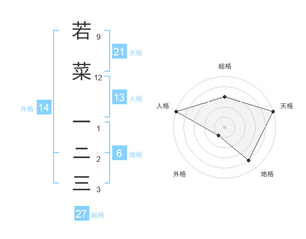 若菜 一ニ三さんを姓名の画数から五運を鑑定