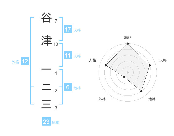 谷津 一ニ三さんを姓名の画数から五運を鑑定