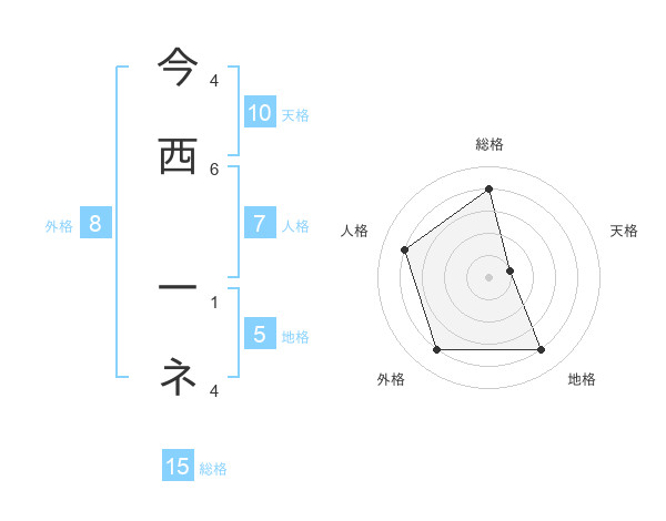 今西 一ネさんの総格は15画の4点!