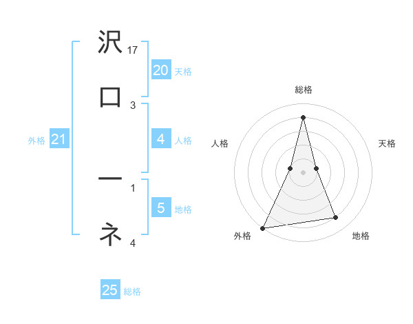 沢口 一ネさんの総格は25画の4点!