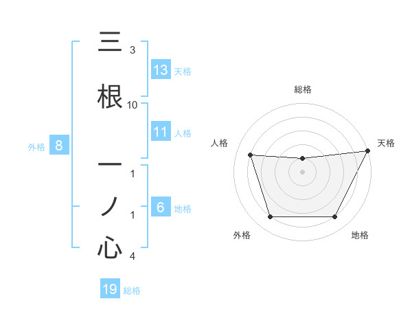 三根 一ノ心さんの天格は13画の5点!