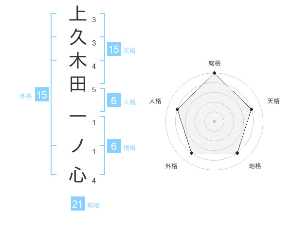 上久木田 一ノ心さんの総格は21画の5点