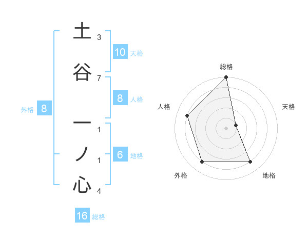 土谷 一ノ心さんの地格は6画の4点!