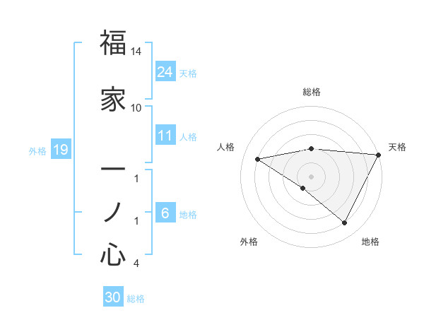 福家 一ノ心さんを姓名の画数から五運を鑑定