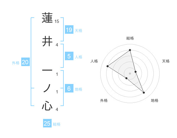 蓮井 一ノ心さんを姓名の画数から五運を鑑定