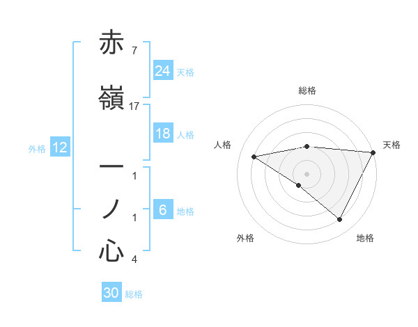 赤嶺 一ノ心さんを姓名の画数から五運を鑑定