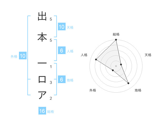 出本 一ロアさんの総格は16画の5点!