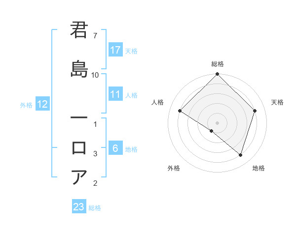 君島 一ロアさんの天格は17画の4点!