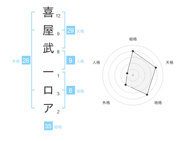 喜屋武 一ロアさんを姓名の画数から五運を鑑定
