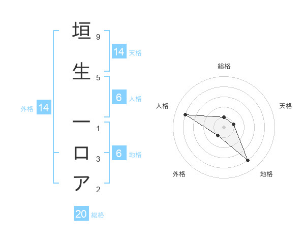 垣生 一ロアさんを姓名の画数から五運を鑑定