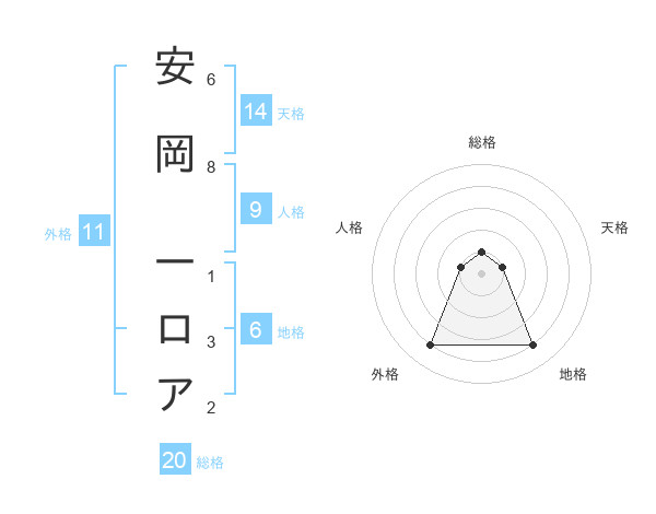 安岡 一ロアさんを姓名の画数から五運を鑑定