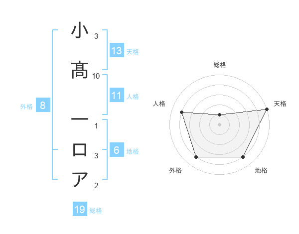 小髙 一ロアさんの天格は13画の5点!
