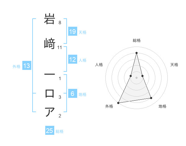 岩﨑 一ロアさんの総格は25画の4点!